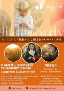 Serdecznie zapraszamy na coroczną uroczystość ku czci św. Hildegardy. 17 września to dzień, w którym zgodnie z Kalendarzem Rzymskim Święta jest wspominana w Kościele katolickim.